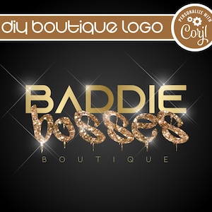 DIY Blue Glitter Logo, Boutique Fashion Logo, Customizable Pink Sparkle Glam Cosmetics Logo, Lash Hair Nail Business Logo, Butterfly Logo