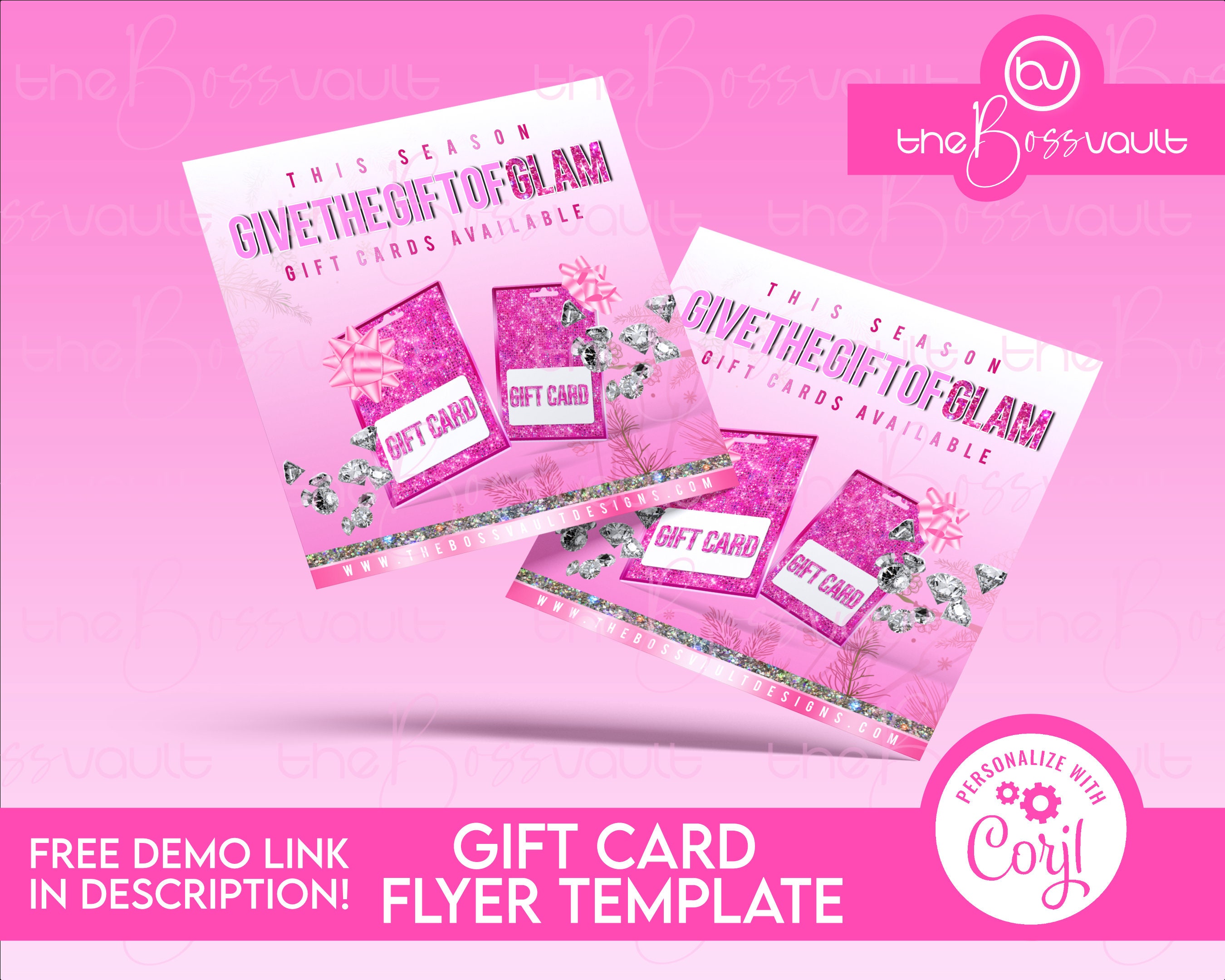 DIY Gift Cards Available Flyer, Social Media Post Template, Pink and Silver Holiday Flyer Design, Christmas Sale Flyer Template, Glitter