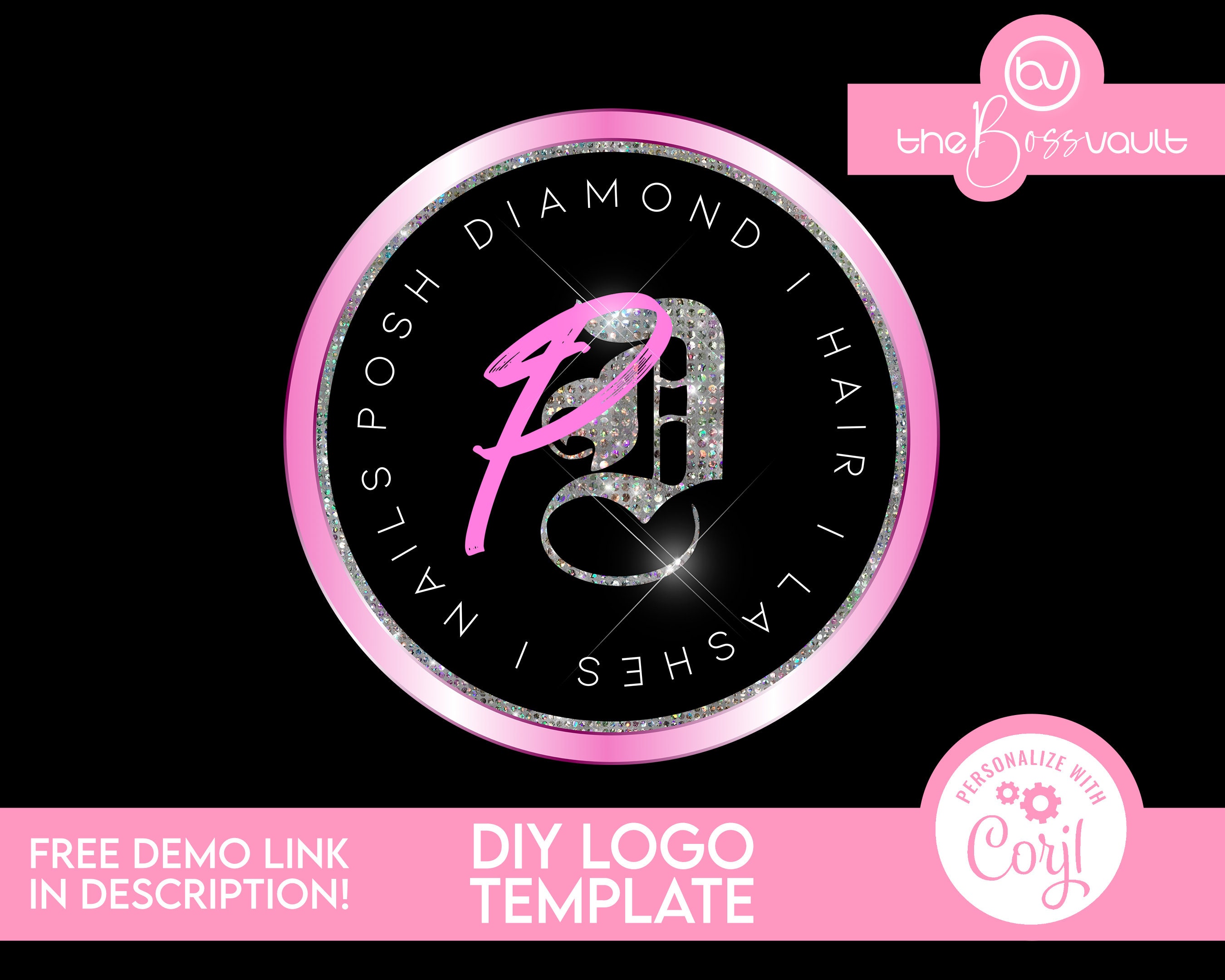 DIY Pink Glitter Logo, Submark Design, Social Media Logo Template, Glitter Business Logo, Editable Logo Template, Boutique Logo, Hair Logo