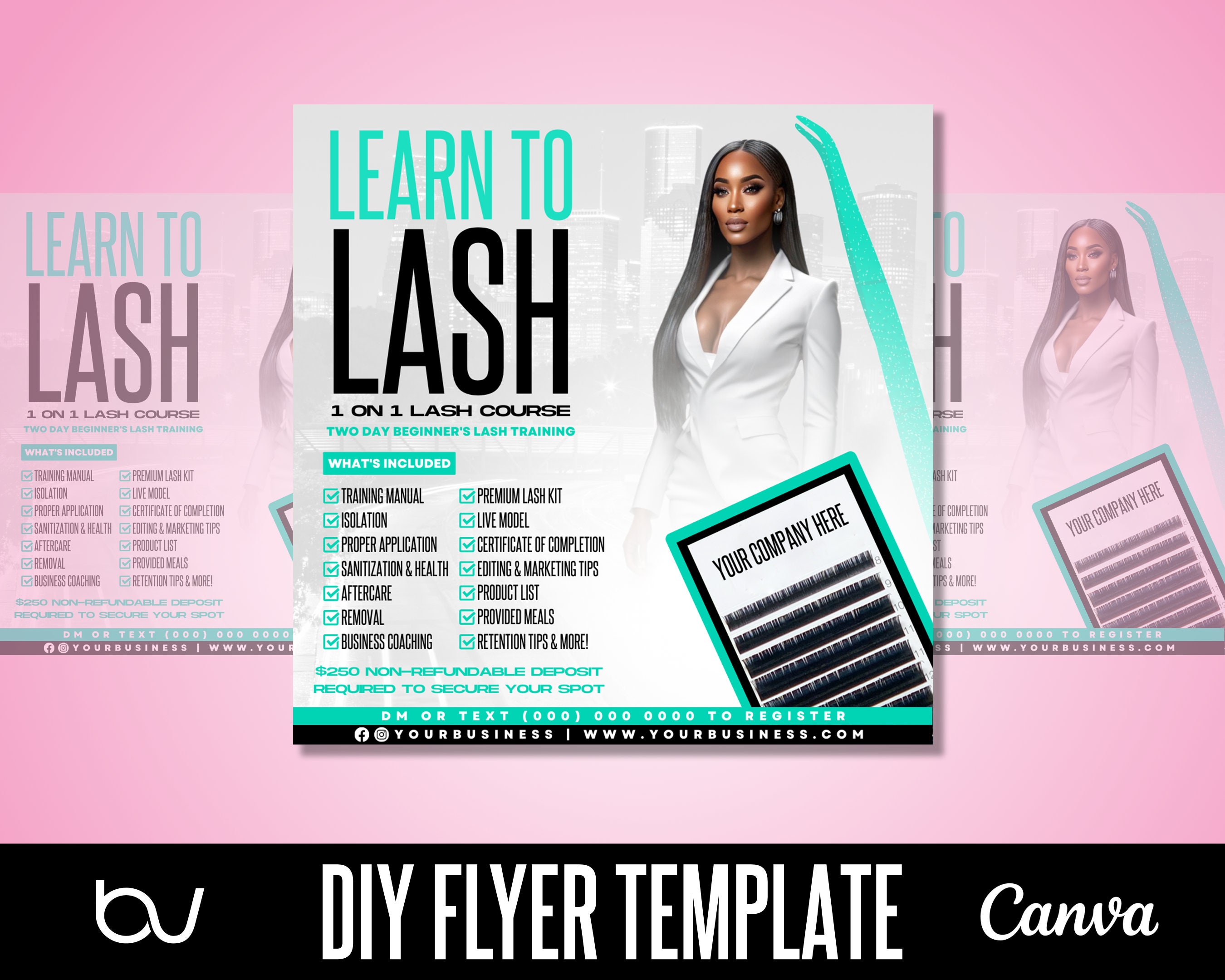 DIY Lash Training Flyer, Teal Lash Training Flyer Template, Editable Lash Flyer, Lash Class Flyer, Lash Extension Flyer, Canva Flyer