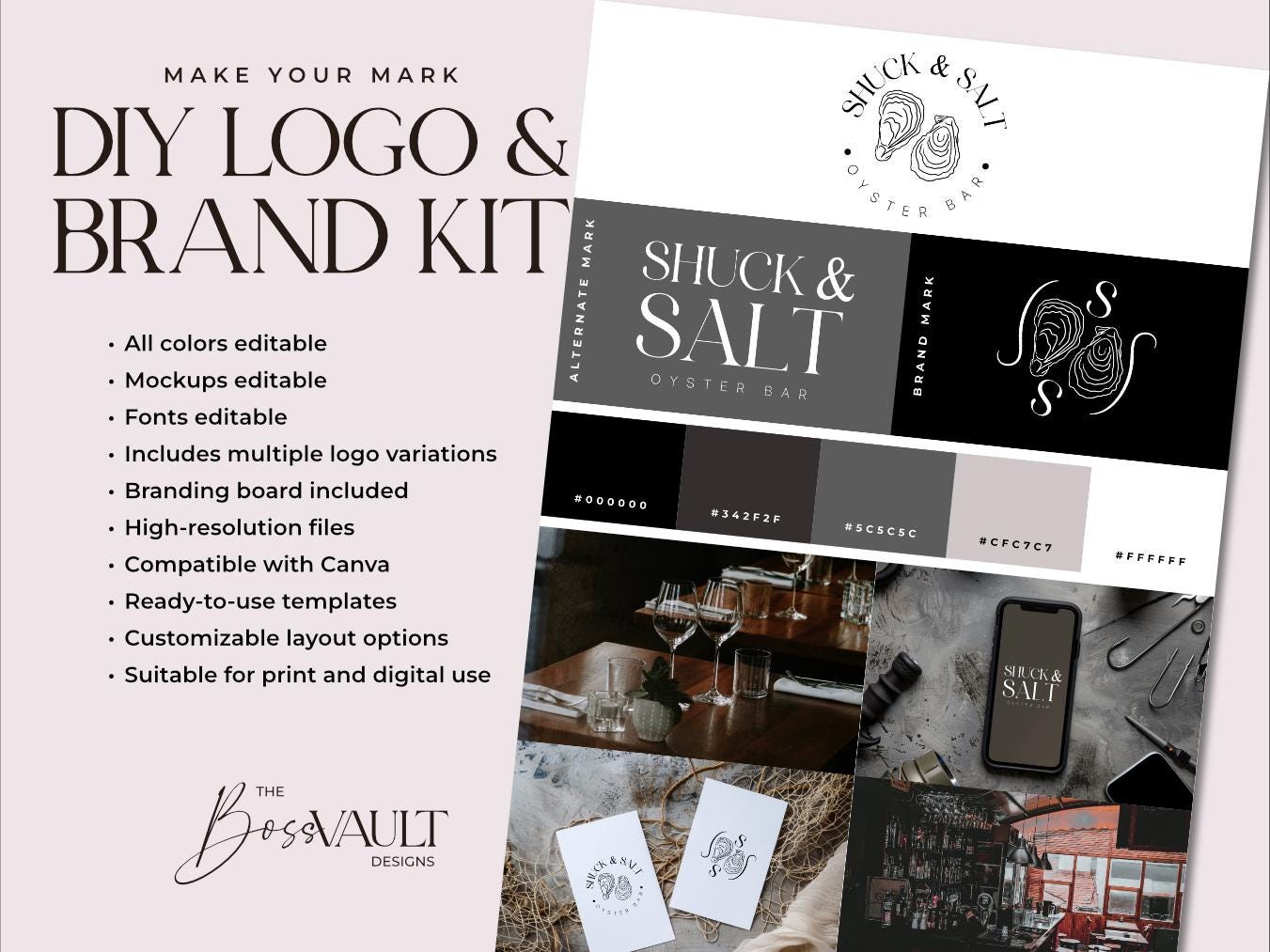 DIY Oyster Logo Branding Kit - Seafood Logo Set - Marine Brand Template - Coastal Brand Kit - Editable Canva Branding Bundle