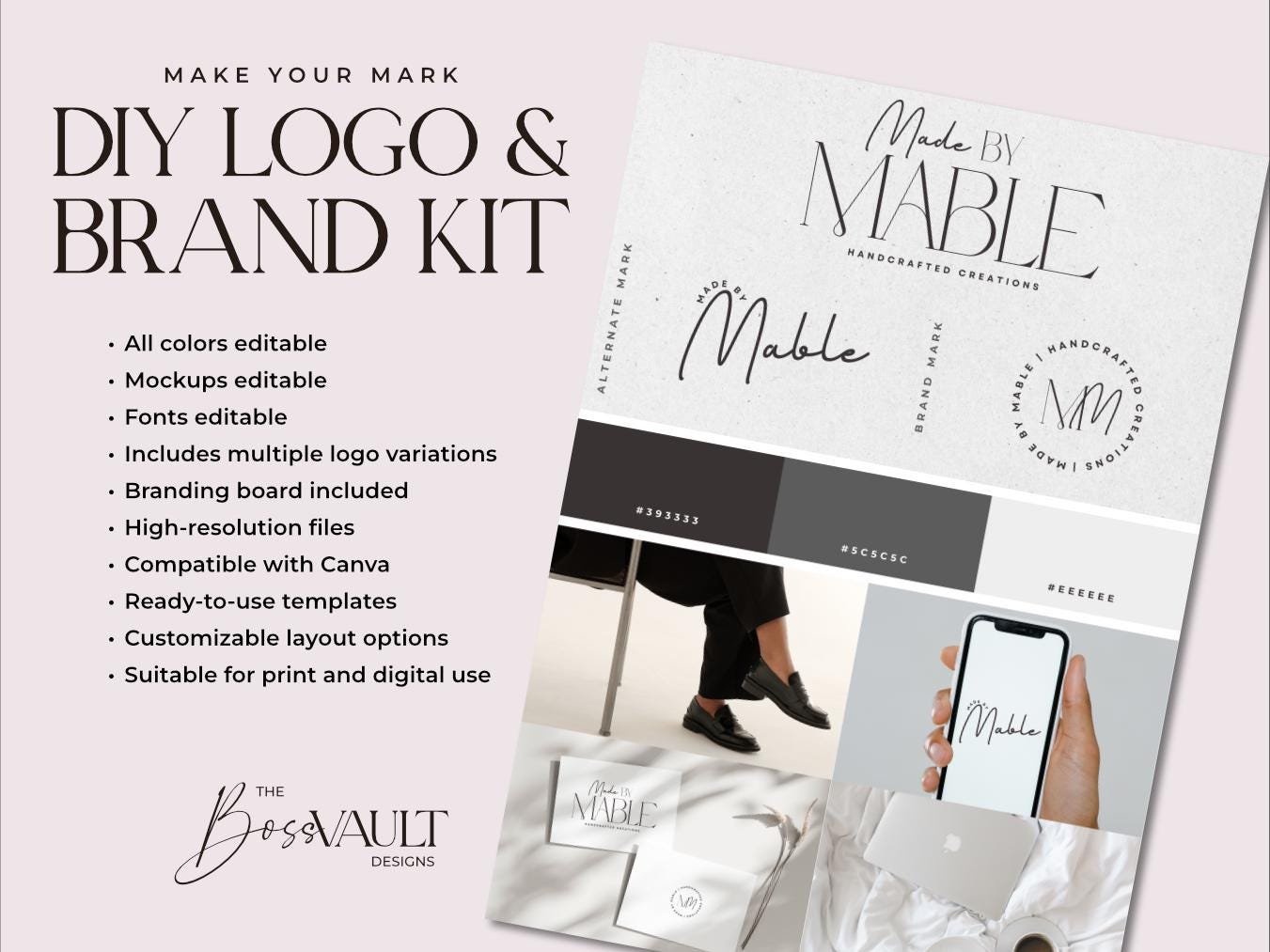DIY Minimalist Branding Kit - Cursive Logo Set - Boutique Logo Design - Beauty Branding Bundle - Canva Editable Logo Brand Kit