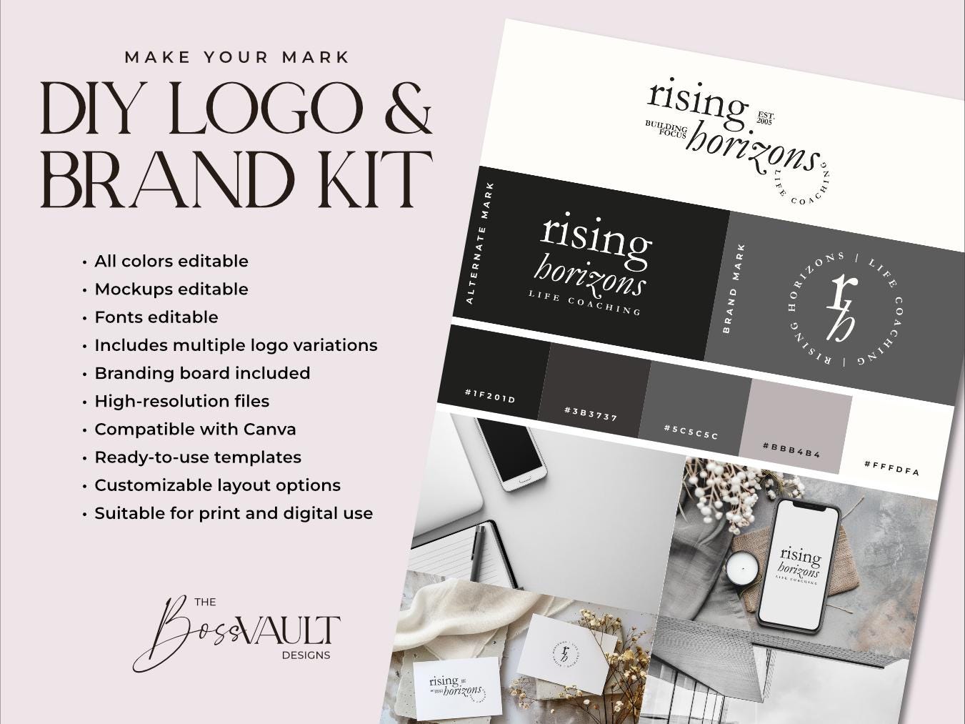 Elevate your brand with our comprehensive Minimal Branding Kit, meticulously designed to provide everything you need to create a cohesive and captivating brand identity. Perfect for businesses, influencers, and creatives, this kit ensures you have all the tools to make your mark.