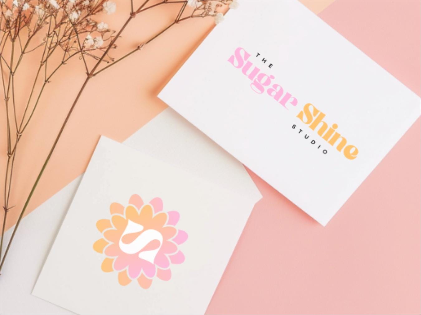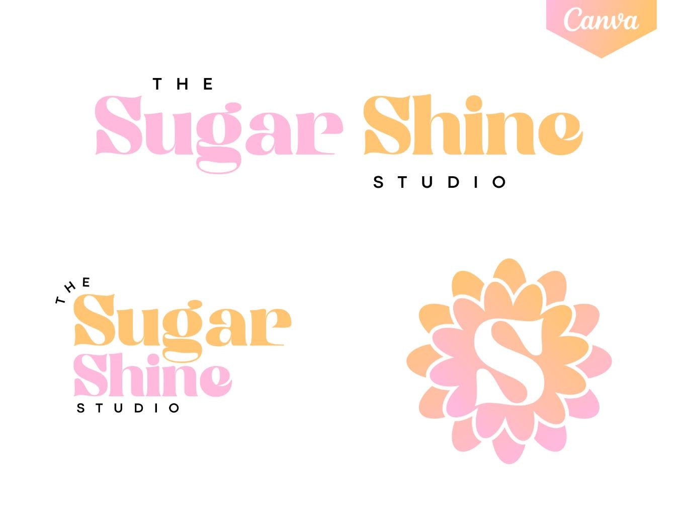 Bright Minimal Salon and Spa Logo Bundle - Editable Beauty and Cosmetics Logo - Orange and Pink Flower Design - Editable Branding Board