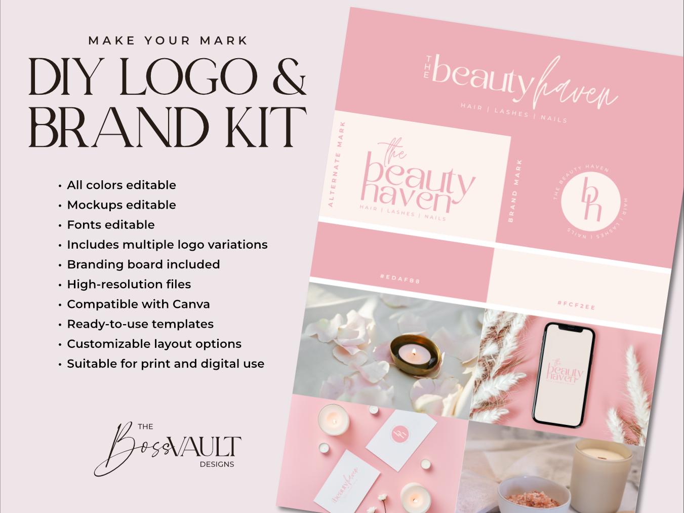 DIY Beauty Branding Kit, Salon Logo Set, Cosmetics Branding Kit, Boutique Brand Template, Pink Logo Design, Nail Logo Design, Lash Logo Set