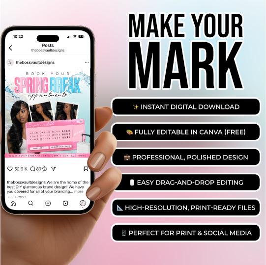Spring Break Appointment Flyer Template, Hair Stylist Bookings (Instant Download)