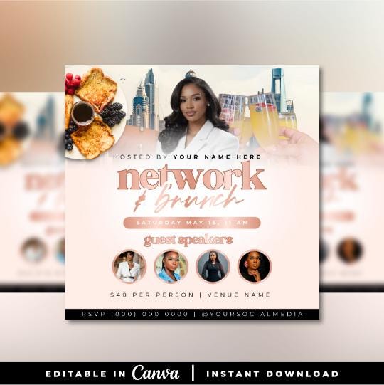 DIY Brunch Network Event Flyer, Business Brunch Party Flyer Template, Editable Social Media Promotion